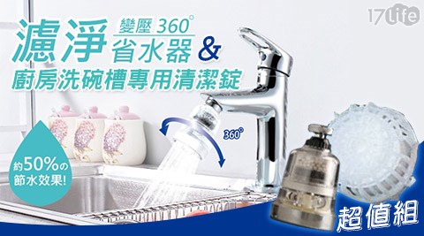 平均最低只要369元起(含運)即可享有【神膚奇肌】廚房系列超值組:1組/2組/4組/8組,每組包含:龍頭濾淨省水器(廚房衛浴專用機型)搭贈內外牙轉換器2個+【日本大阪】廚房洗碗槽專用清潔錠1?